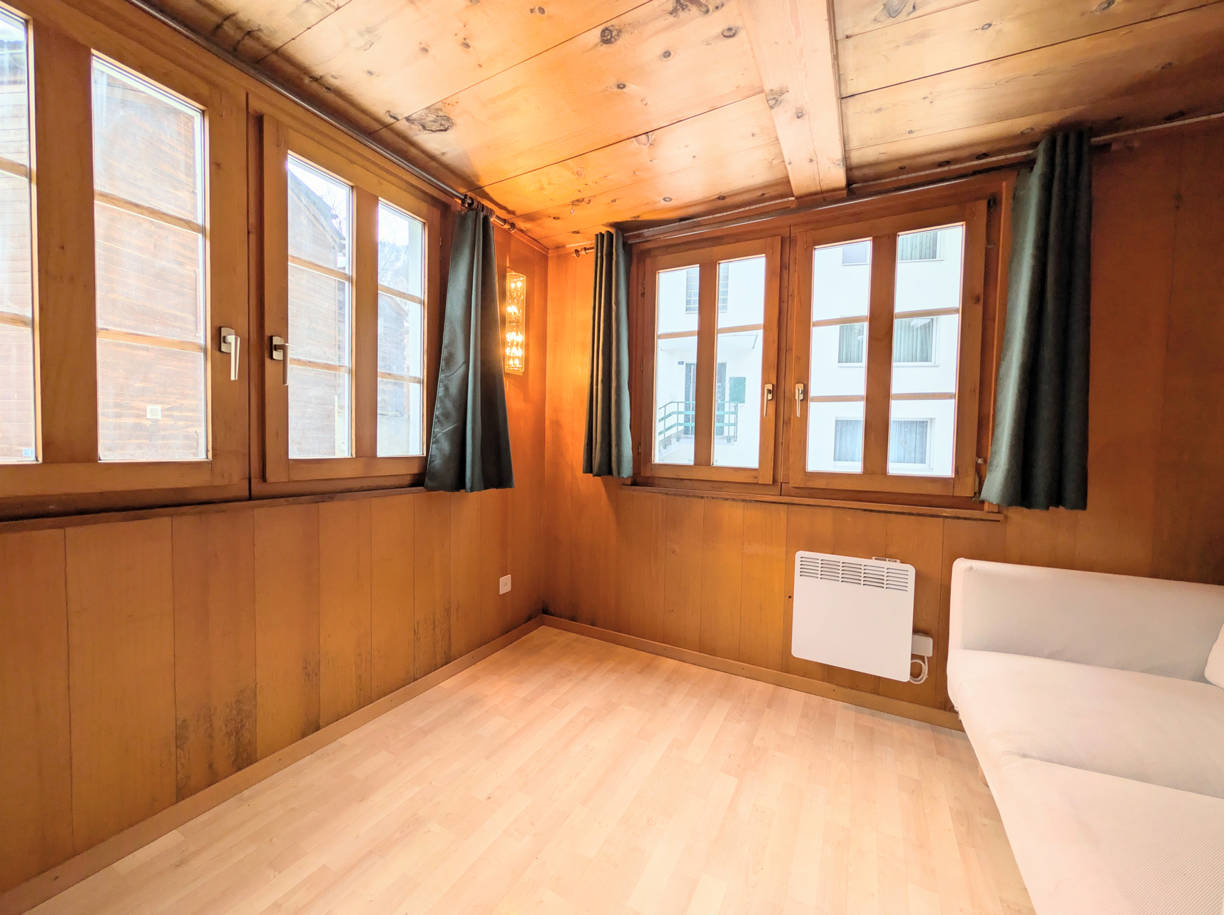 Bei dieser 2.5 Zimmerwohnung handelt es sich um ein seltenes Bijou in einem historischen Wohnhaus in Zermatt.
