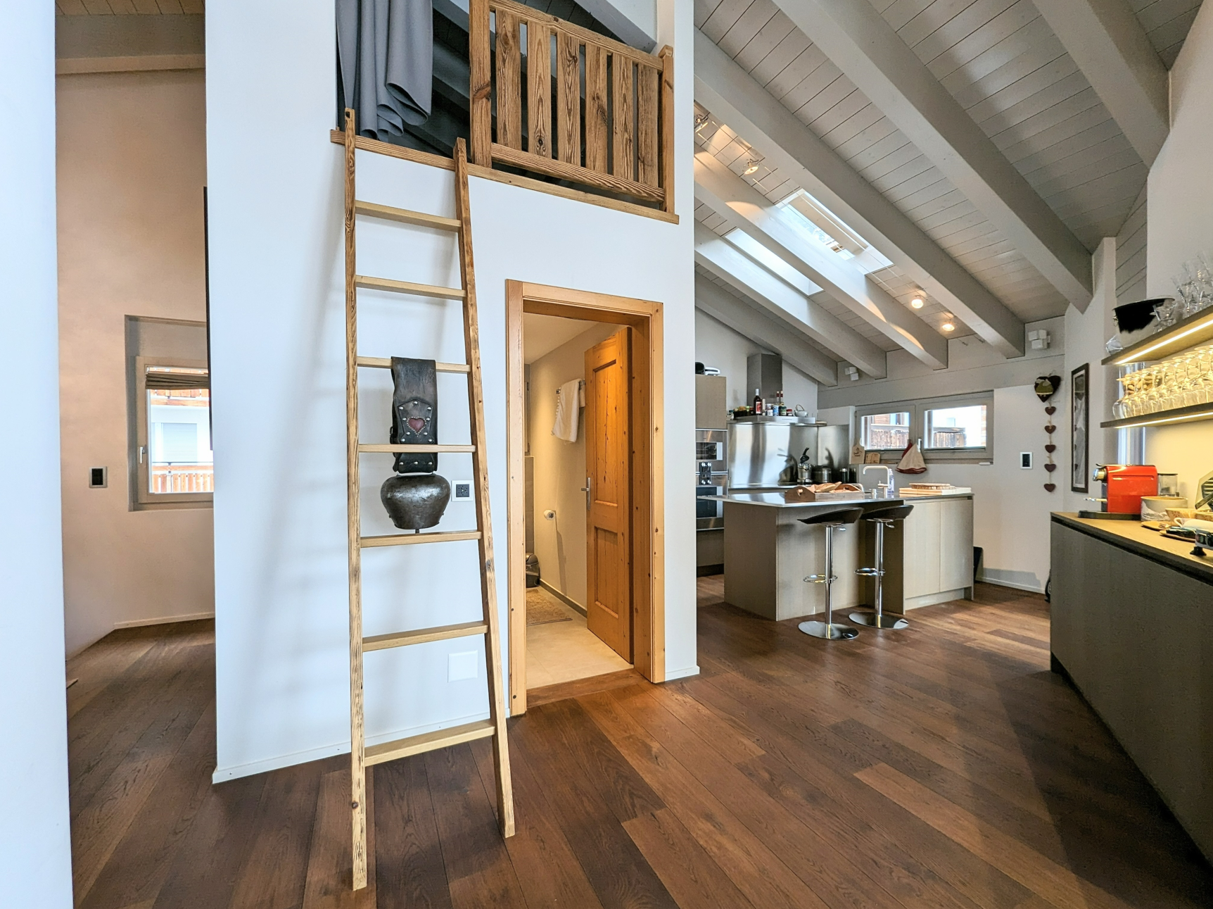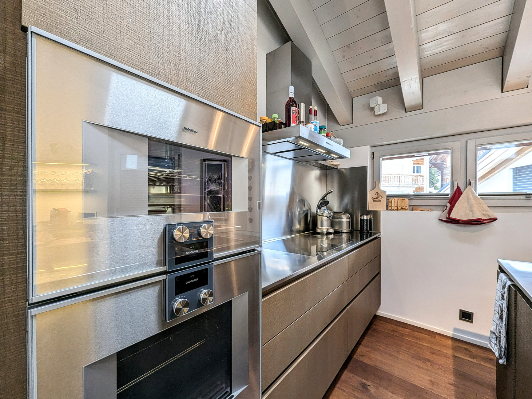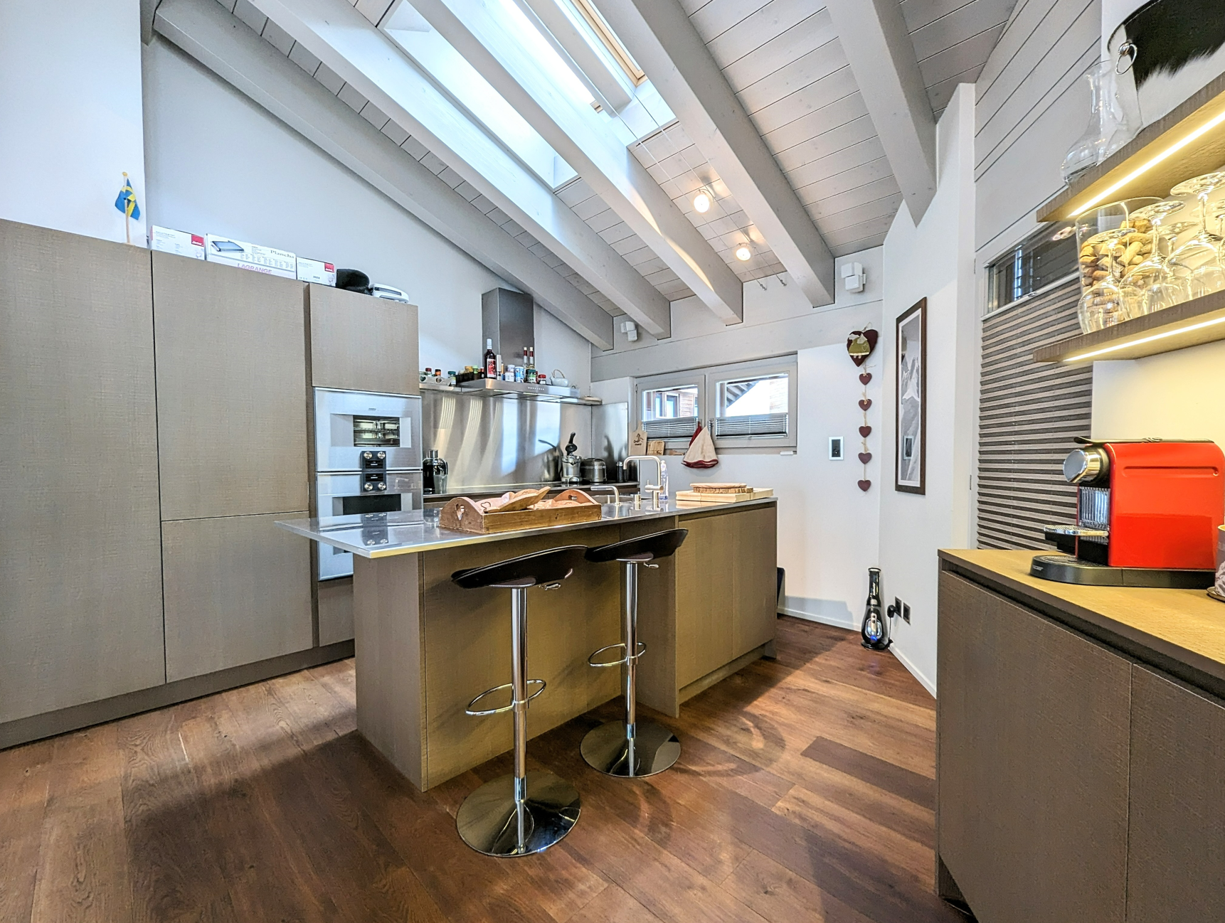 Es wurde eine Qualitätsküche eines Schweizer Premium-Herstellers verbaut. Der Zustand ist hervorragend. Das Raumgefühl in der Küche aufgrund der Unterdachraumhöhe sensationell.